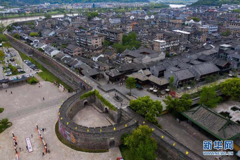 空中俯瞰台州临海的台州府城文化旅游区。这里囊括了江南长城、紫阳古街、东湖夜月、巾山塔群等知名景点,旅游资源丰富、层次多样(4月7日摄,无人机照片)。新华社记者 徐昱 摄