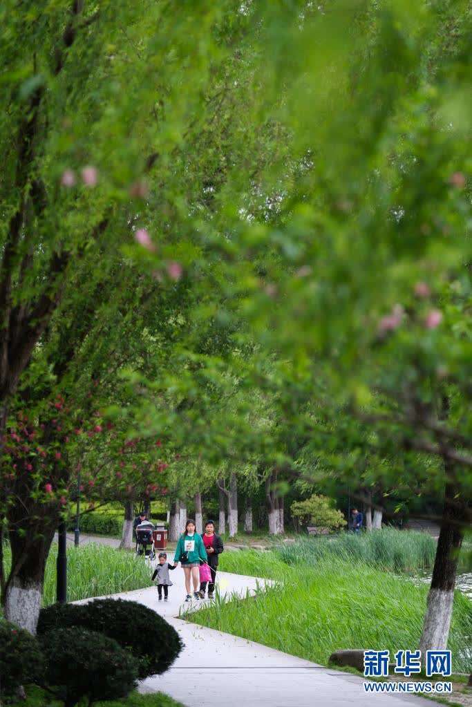 4月7日,游客在台州临海的灵湖景区观赏春色。新华社记者 徐昱 摄