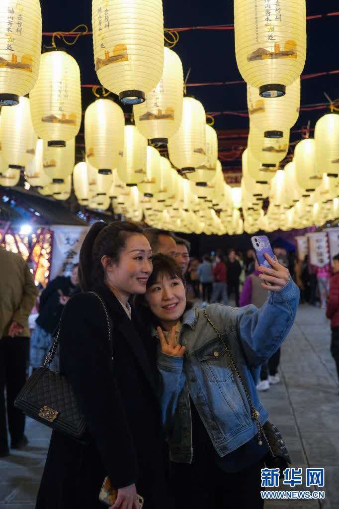 4月7日,游客在临海的台州府城文化旅游区内体验紫阳街的民俗文化夜游项目。新华社记者 徐昱 摄