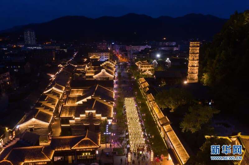 4月7日,游客在临海的台州府城文化旅游区内体验紫阳街的夜游项目,紫阳街是中国历史文化名街。新华社记者 徐昱 摄