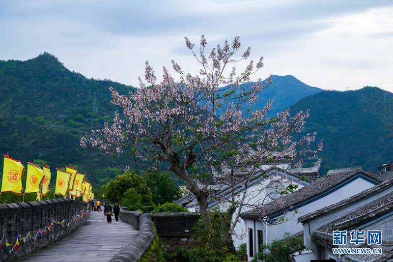 4月7日,游客在临海的台州府城文化旅游区游览江南长城。新华社记者 徐昱 摄