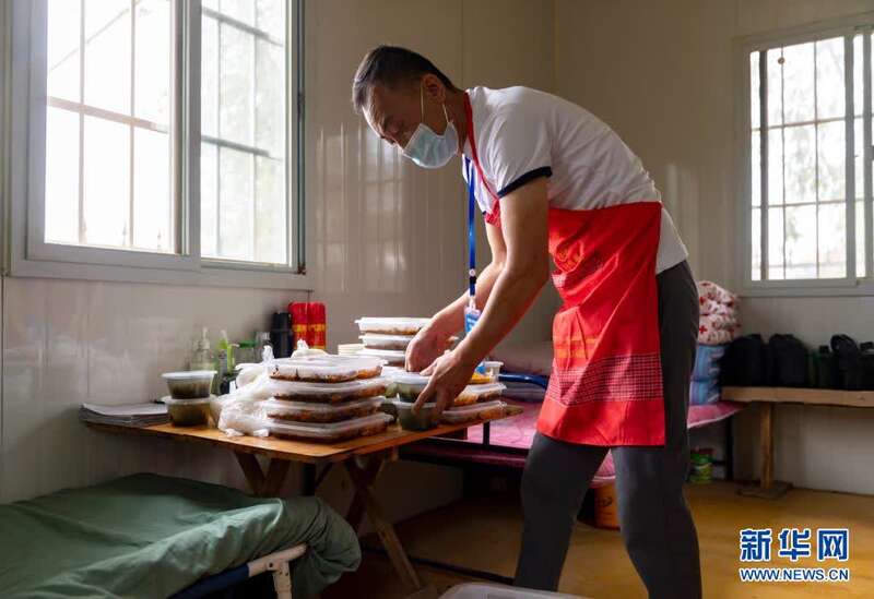 4月4日,在瑞丽市姐相乡一个边境疫情防控执勤点,送餐员为巡边人员送来午餐。新华社记者 陈欣波 摄