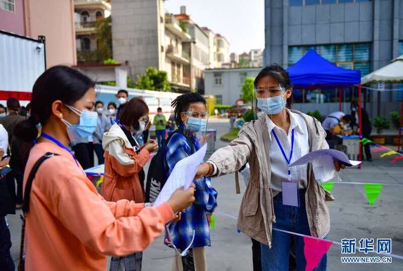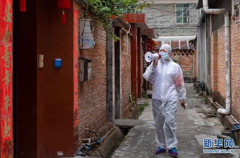 4月6日,在瑞丽市友谊社区,工作人员上门通知居民分批次去做核酸检测。新华社记者 陈欣波 摄