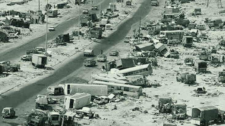 伊拉克巴士拉省萨夫万的这条公路,是与科威特相接的一条跨境高速。在当地人嘴里,它还有另外一个名字——“死亡公路”。