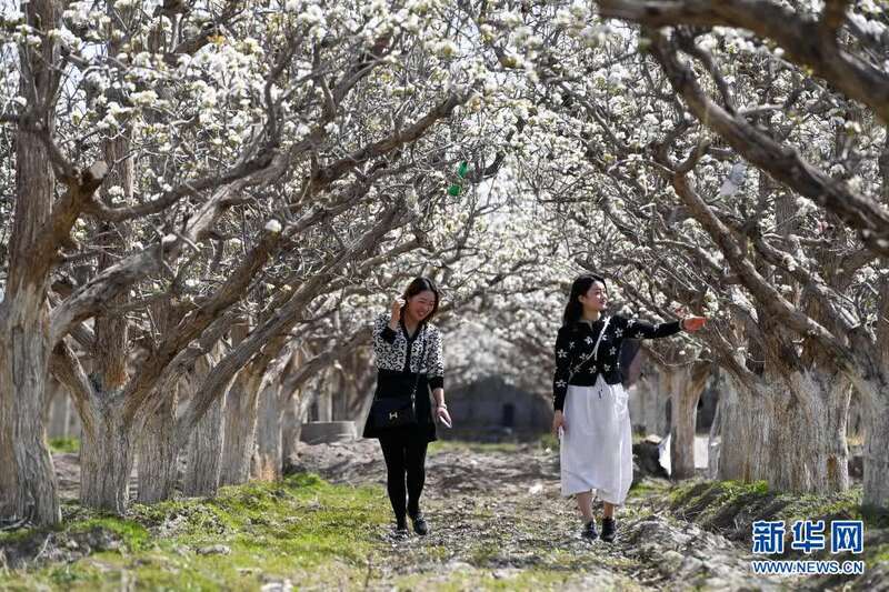 清明过后,气温转暖,位于塔克拉玛干沙漠北缘的新疆库尔勒市四十余万亩梨花竞相绽放。梨园“雪”海如画,美不胜收,吸引了众多游客前来踏青、赏花、游玩,在千树万树梨花中享受无限春光。