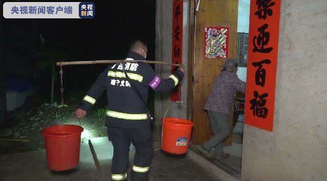 南宁市消防救援支队获悉灾情后,立即与当地政府联系,派出辖区消防救援站。在兴宁区五塘镇西瓜市场,消防车抵达供水点时,周边居民们纷纷将自家的水桶、水盆等盛水工具摆放好,消防员立即下车铺设、连接水带,快速启动消防泵给居民们接水。当得知村中有户老人年事已高行动多有不便时,送水的消防员赶到其家中拿来水桶,将满满的两桶水送到了家里。据镇政府的工作人员介绍,兴宁区五塘镇从6日开始停水,受影响的主要是镇区以及附近大约一万人,还有五塘社区、西龙村、六塘村、英广村等部分村坡的群众。