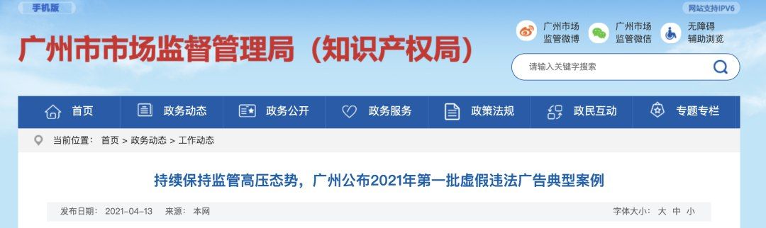 4月13日,广州市市场监督管理局公布2021年第一批(15个)虚假违法广告典型案例。公布的案例中涉及拉名人“背书”等刻意误导消费者的违法行为。