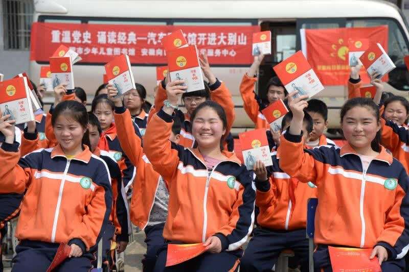 中国青年报客户端六安4月15日电(中青报·中青网记者 王海涵 通讯员 邱杨)今天上午,六安市金安区孙岗镇许小河学校的操场上,来了一辆“特别”的中巴车,孩子们走进车厢,挑一本喜爱的图书。为迎接4月23日“世界读书日”,由安徽向日葵公益助学服务中心联合合肥市少年儿童图书馆开展的“重温党史 诵读经典——汽车图书馆开进大别山”活动正在进行。
