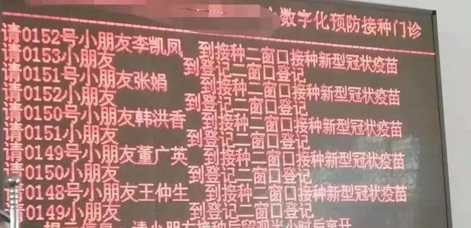 “请0152号小朋友到接种二窗口接种新型冠状疫苗。”