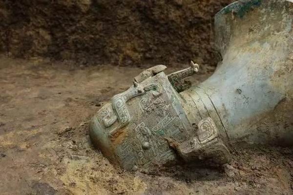 本次三星堆遗址祭祀区考古发掘中3号坑出土的铜尊局部