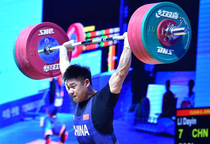 资料图:中国选手李大银在挺举比赛中。新华社记者贺长山摄