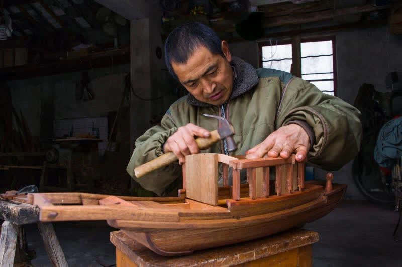 在创作以白洋淀为背景的一艘船模时,徐海林还特意乘火车去了小兵张嘎的故乡——河北白洋淀嘎子村。实地考察加上查阅史料,再尽可能多地翻看老照片,等到胸有成竹之后,徐海林才会正式开始创作。几乎每一艘船模的创作,都要耗时一个多月。