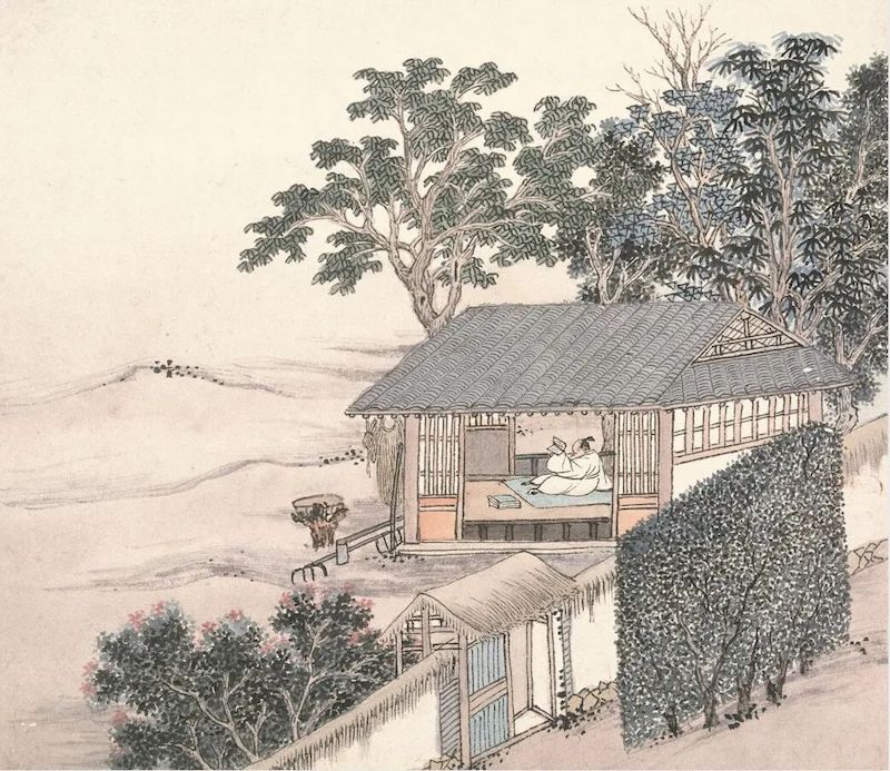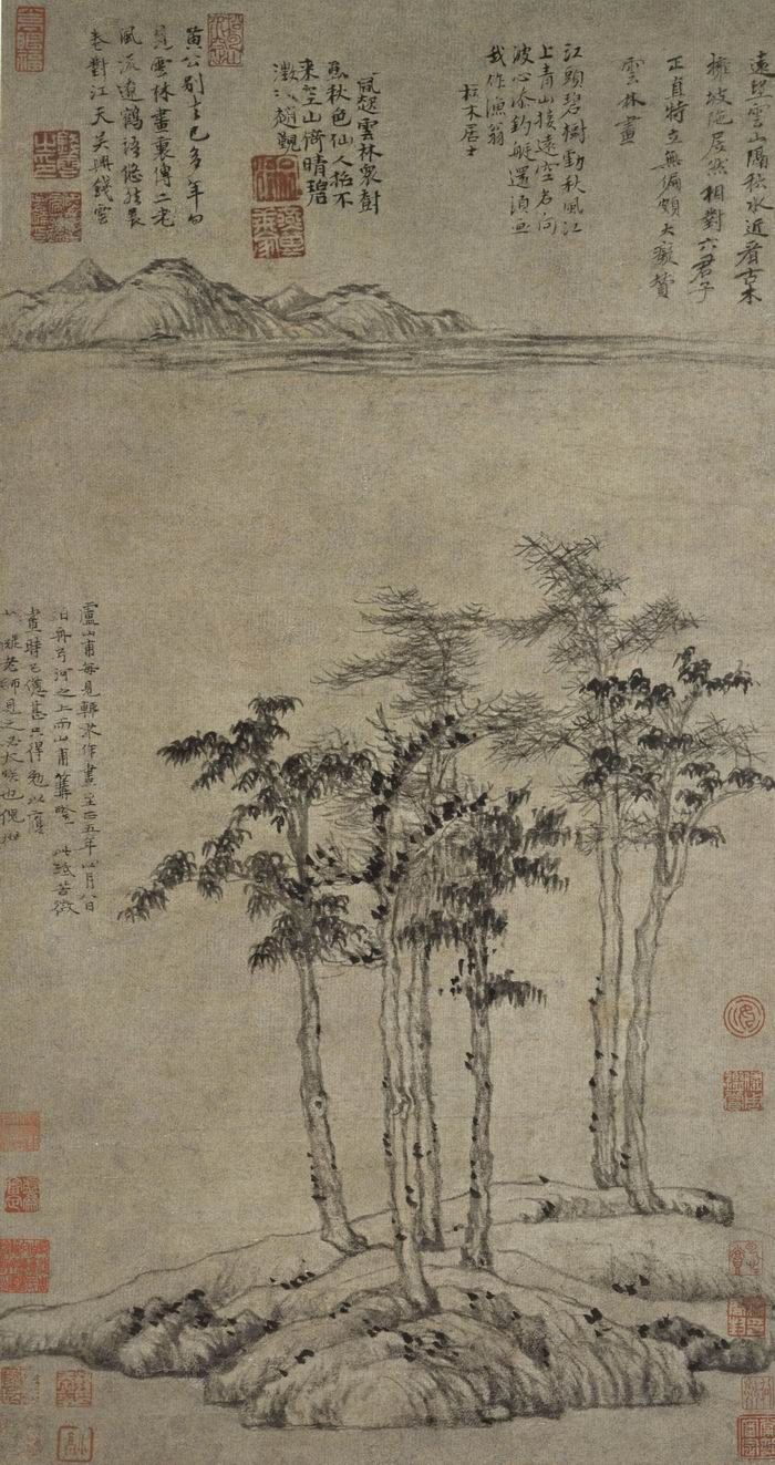 倪瓒,《六君子图轴》,纸本墨笔,上海博物馆藏,1345年