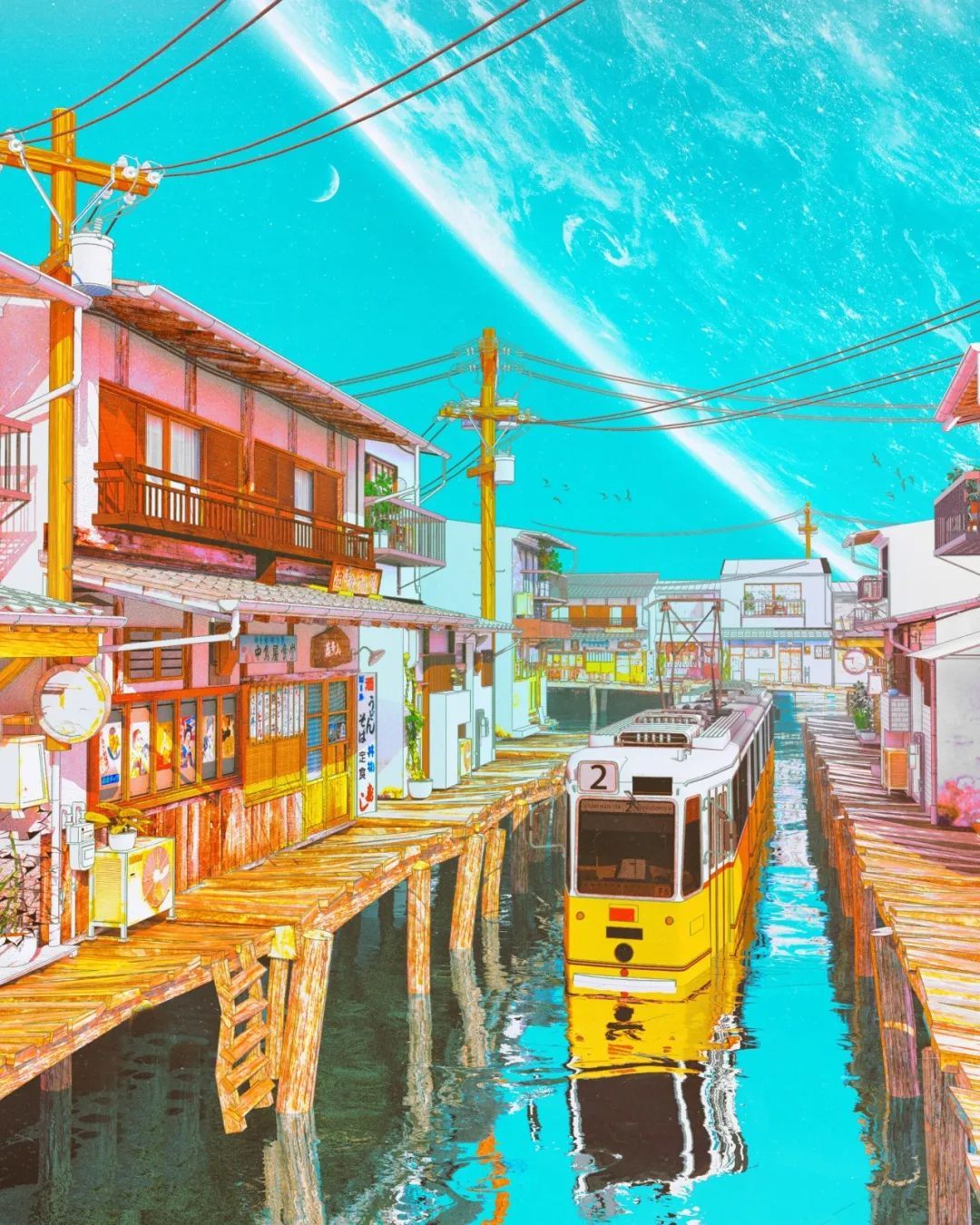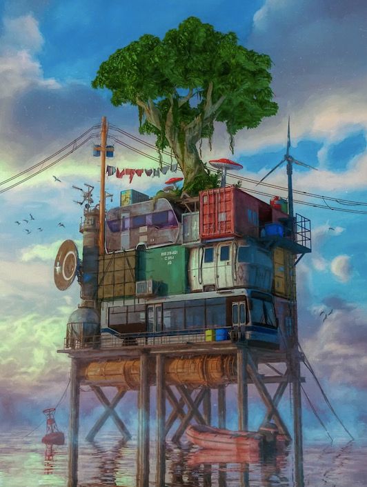比普数字作品《海滨》的静止图像,据称以600万美元售出。