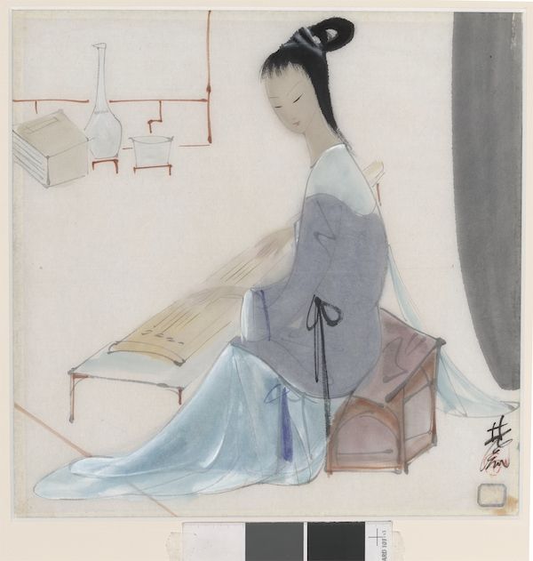 林风眠 《弹琴仕女》纸本水墨设色 34×34cm 1950年代 中华艺术宫藏