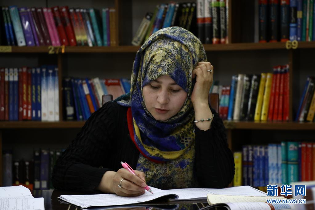 4月22日,一名学生在阿富汗北部巴尔赫省首府马扎里沙里夫的一家图书馆读书。
