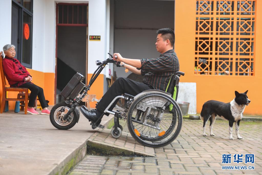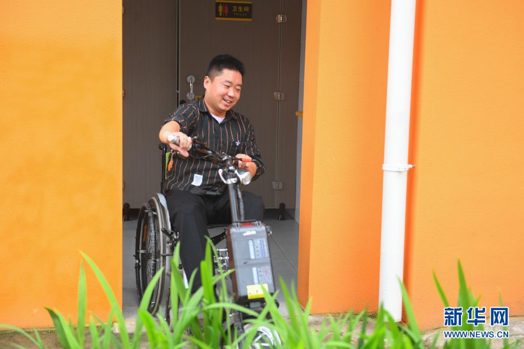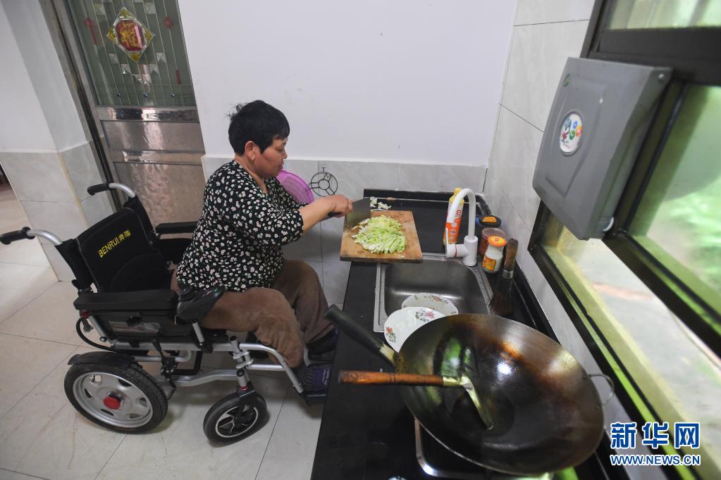 4月23日,在湖南省长沙市天心区暮云街道暮云新村,村民在使用卫生间后驾驶电动轮椅车通过已拓宽的卫生间门。