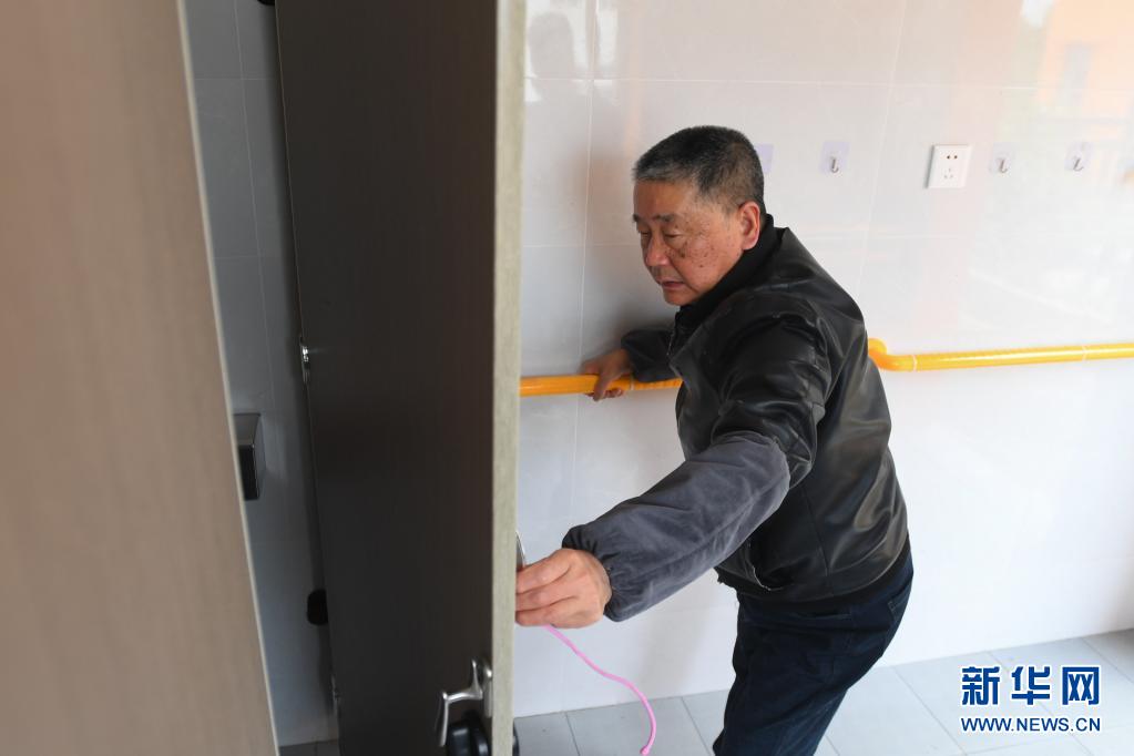 4月23日,在湖南省长沙市天心区暮云街道暮云新村,村民在家中扶着新安装的扶手准备上卫生间。