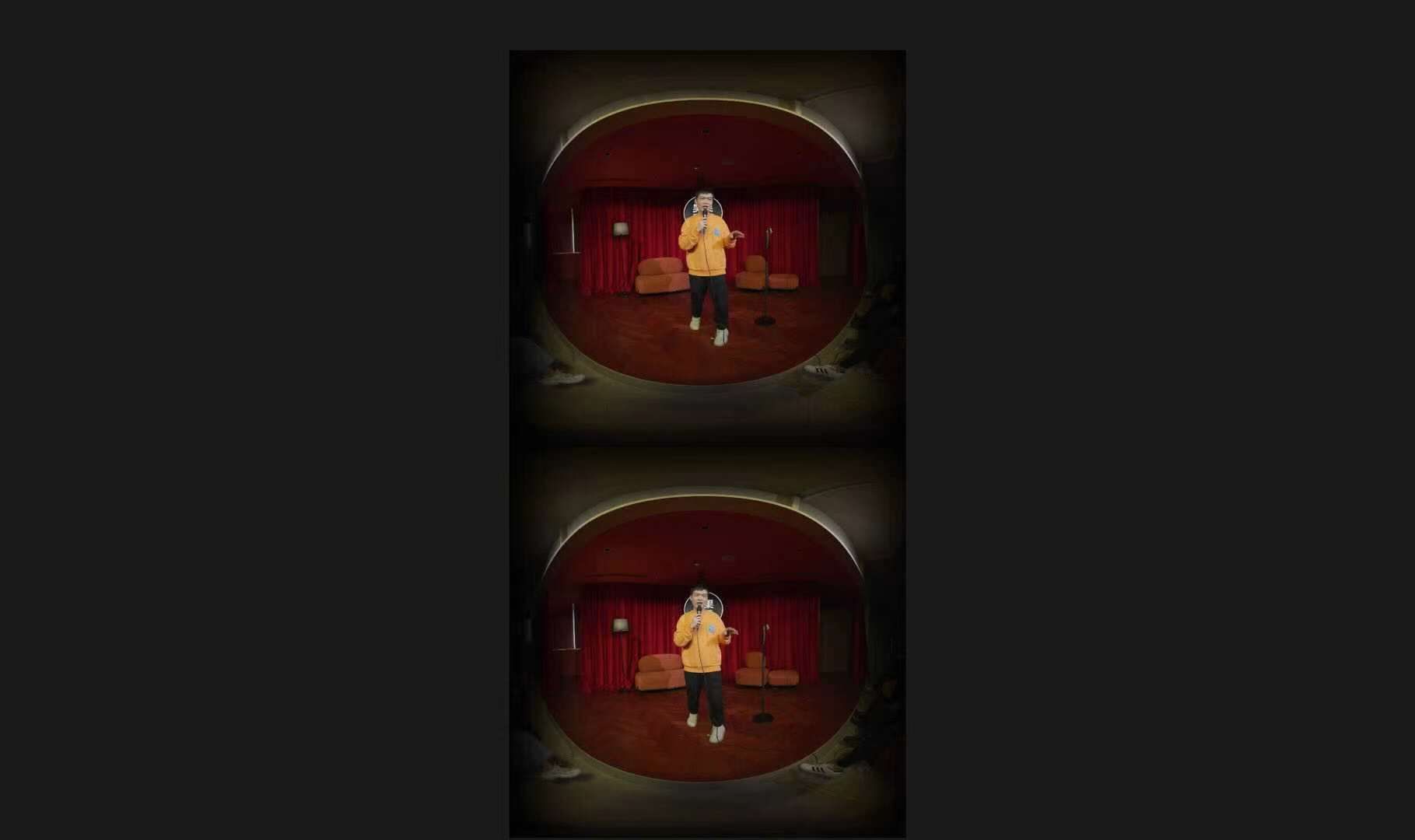 当然,VR脱口秀的使用场景,也不仅限于“唱吧”。古宇正说:“观众可以戴着设备,坐进同一个电影院或者剧场,一起看一场虚拟演出;也可以每个人在家戴上VR眼镜,在全世界共同进入同一个演出现场,实现云直播。”