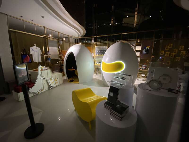 我被店员邀请坐进一只“蛋壳”里。他指着屏幕上的四位脱口秀演员,问我想看哪位?