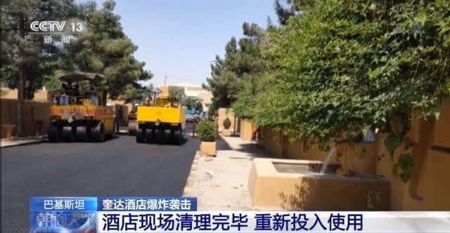 新铺的沥青路面还没有彻底干,此前记者在停车场爆炸现场看到的一个汽车形状的焦黑地面几乎不见了,周围路面因爆炸产生的小坑也已被填平,从停车场大门到酒店大厅已经是修葺一新。