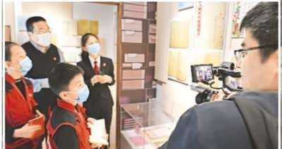 在福建省泉州市鲤城法院家事文化馆内,法官通过线上直播讲解的方式为社区居民介绍展馆的精彩内容。