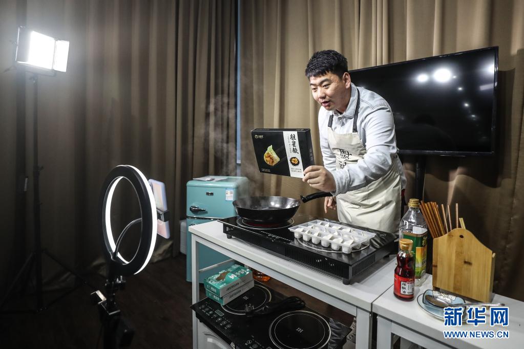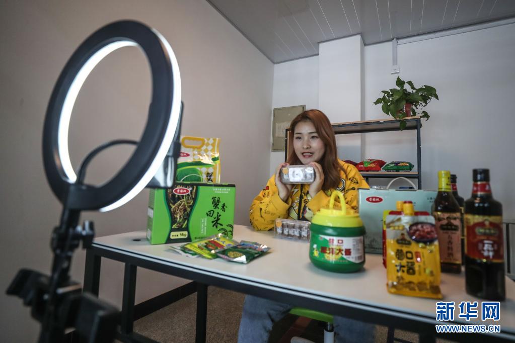 辽宁省营口市老边区社交电商产业园一家公司的网络主播在直播卖货(2020年6月2日摄)。