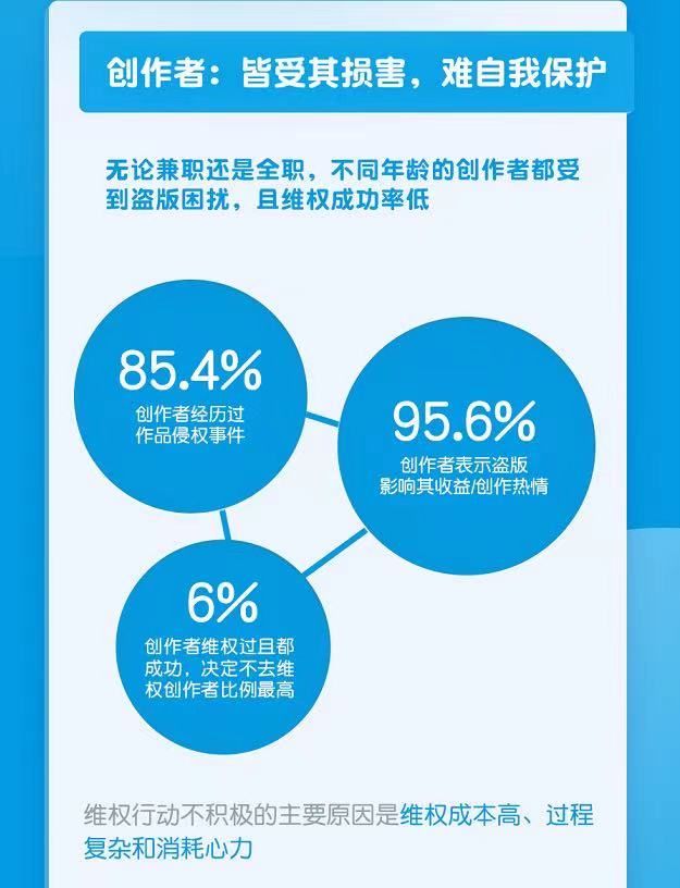 由于维权成本高,网文作家个人维权难度颇大。白皮书显示,在遭遇过侵权的创作者中,仅32.1%的创作者有过维权行动,45.5%的创作者选择放弃维权。“我们写作时间很长,需要集中精力。让我自己做盗版追溯、举证,非常困难。”张静说,“一些作者已经不写了,专门花几年维权。”