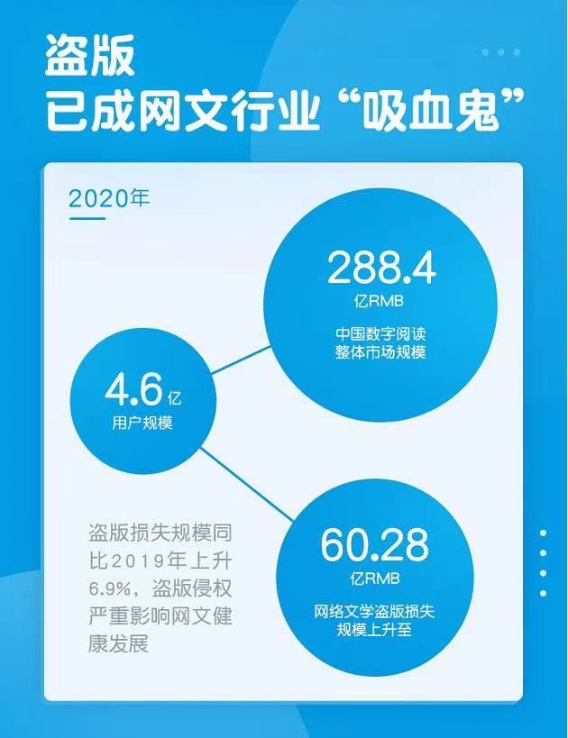 4月26日是世界知识产权日。《中国网络文学版权保护白皮书》显示,2020年中国网络文学盗版损失规模上升至60.28亿元,同比2019年上升6.9%。尽管网文盗版问题是老生常谈,但时至今日,它依然是挥之不去的行业顽疾。