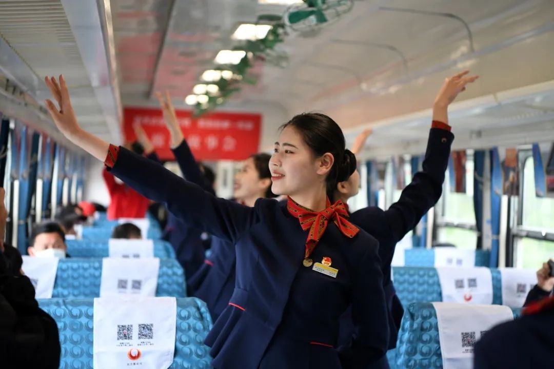 据列车员袁延艳介绍,这趟列车不但载着老区人民往返于麻城、淮滨之间探亲、上学、务工、做小生意,还为沿线铁路职工通勤提供便利。