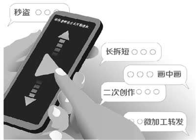 王军称,短视频侵权主要包括创作者侵权及传播平台侵权两种方式。创作者通常有这五种直接侵权方式:“秒盗”,即整个短视频被完整搬运转发到平台,这些短视频包括影视剧片花、花絮、片尾曲以及一些网红知识产权(IP)短视频等;“长拆短”,即将热门影视剧等长视频裁剪做成数个短视频,上传至平台;“画中画”,删除原作品片头片尾,将核心画面直接裁剪或组装成新的小视频传播;“二次创作”,未经许可对影视经典等长视频或者短视频二次创作,形成一个“新”的短视频;“微加工转发”,将原短视频进行了删除片头片尾,商标(logo)被打上马赛克,画面缩放等小改动,上传至平台传播。