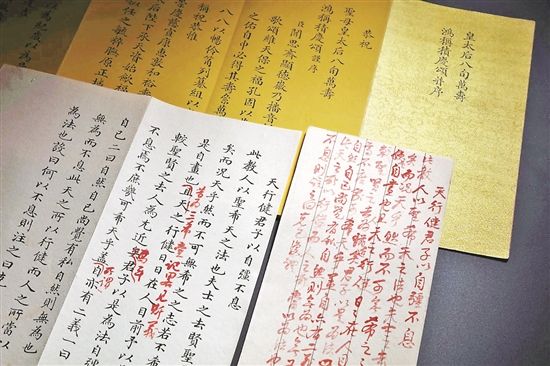 据主办方介绍,这批《乾隆御制诗文稿》全部收录于《四库全书》,既是第一手的清宫档案实物,也是考察清宫档案整理形成过程的重要史料。其文体题材丰富,是考察乾隆推崇的艺文标准、进而塑造宫廷文化的上乘史料;同时,完整再现了乾隆朱稿-墨稿朱批-墨稿成文全过程,展现了乾隆思想成型的过程。