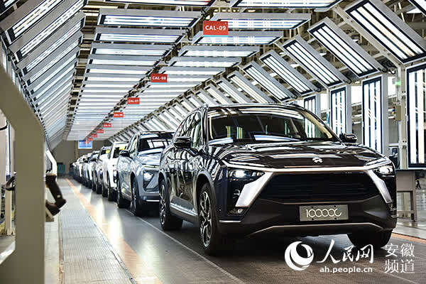 4月7日,蔚来汽车第10万台量产车在合肥下线。人民网 李希蒙摄