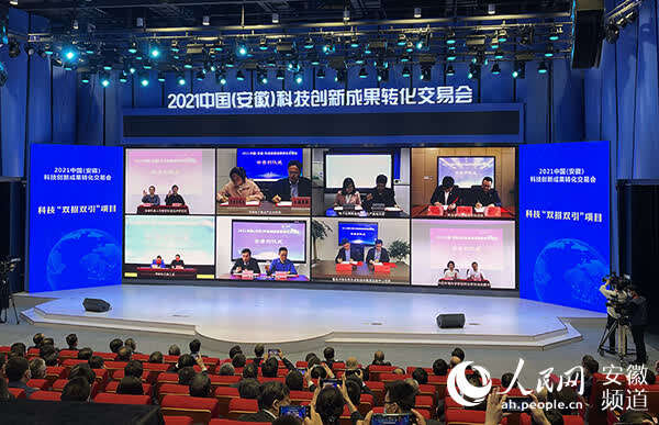 4月26日上午,2021中国(安徽)科交会开幕,60个科技项目进行签约。人民网 王晓飞摄
