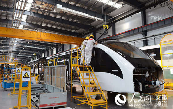 中车浦镇庞巴迪运输系统有限公司泰国曼谷金线自动导向轨道交通项目,是安徽省首个出口轨道交通整车项目。人民网 王锐摄