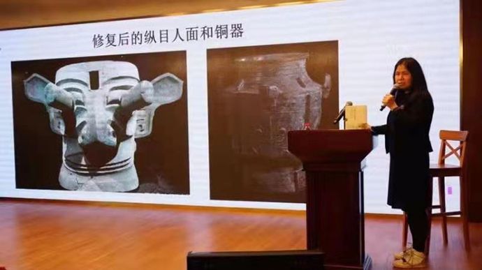 秦小丽介绍:“中国青铜时代的文明,三星堆文化地域虽然与殷商文明相隔一千多公里,但是,根据出土器物却可以表明,在3000多年前,它们已经存在联系。从三星堆出土的玉器与青铜器都和中原的青铜文明有着密切的关联。三星堆,以开发之交融、创新的方式构筑了极具特点的自身体系,它接受并放大了中华青铜文明的特性,而其自身以金、玉、铜三种材质所构成的体系建构了三星堆文化自身的特点,正是中华文明多元一体的表现。”