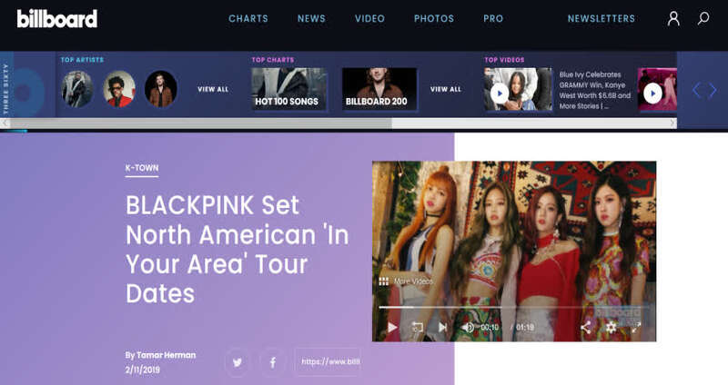 ▲韩国女子天团粉墨(BLACKPINK)进军美国市场,图为Billboard官网报道粉墨北美演唱会/图源:Billboard官网(www.billboard.com)