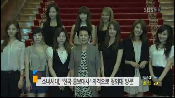 2011年8月19日,韩国国民级女团少女时代(Girls' Generation)受韩国总统夫人金润玉(김윤옥)邀请至青瓦台参观,认可并感谢其对国民文化做出的贡献。次年,少女时代被印入伦敦奥运会韩国国家文化宣传册,成为名副其实的国家名片。2018年,韩国顶流天团EXO作为K-pop代表,被邀请为韩国平昌冬奥会闭幕式表演了其代表曲目《咆哮》(Growl)和象征积极奋斗的歌曲《Power》。