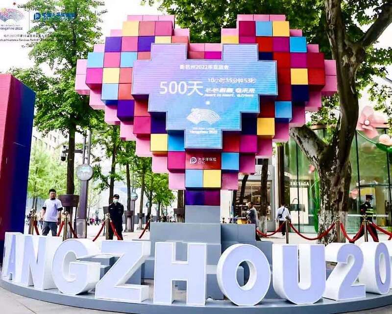 今天,为迎接亚运会倒计时500天,杭州各大户外广告牌、地标性建筑也同步点亮亚运视觉形象元素,营造出全民喜迎亚运的热烈气氛。