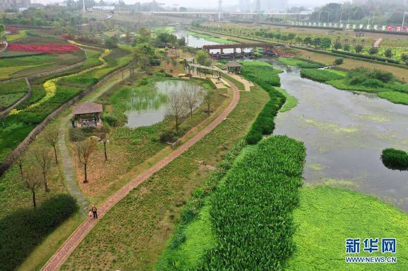 广西南宁市那考河湿地公园景色(3月6日摄,无人机照片)。新华社记者 周华 摄
