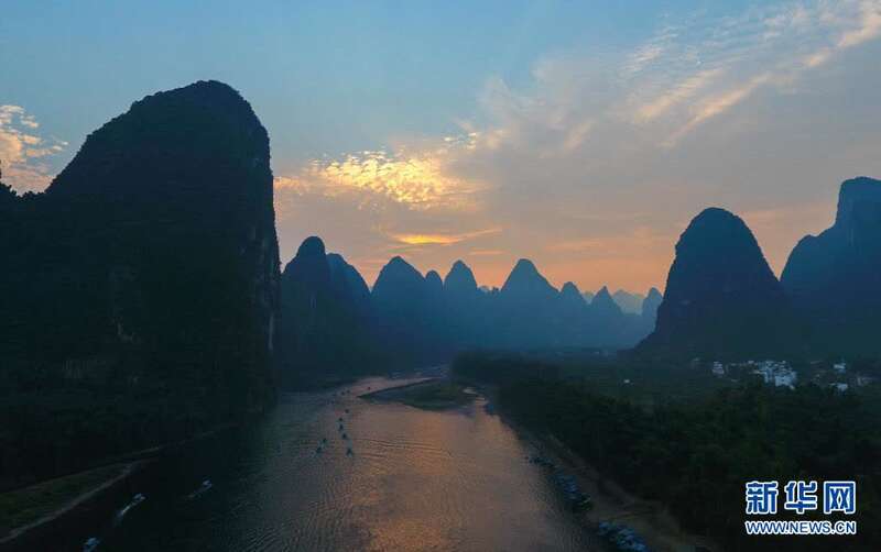 广西桂林市阳朔县兴坪镇漓江景色(2017年10月25日摄,无人机照片)。新华社记者 黄孝邦 摄