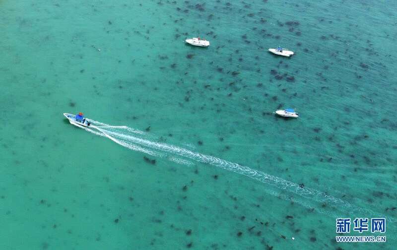 北部湾海域优美的生态环境吸引大批游客前来观光,这是游客在银滩畅游的场景(2019年6月25日摄,无人机照片)。新华社记者 张爱林 摄