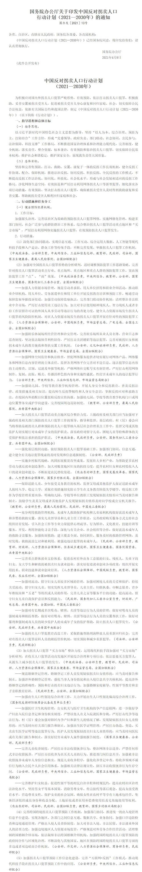 4月28日发布的《中国反对拐卖人口行动计划(2021-2030年)》指出:①严禁以他人名义入院就医和分娩。严厉打击代孕等违法行为;②严厉打击非法收留抚养行为;③依法严惩性侵害未成年人犯罪;④国办要求惩处用网络对儿童隔空猥亵等犯罪。