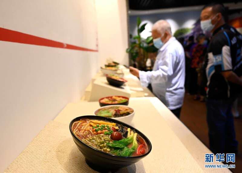 4月29日,在广西柳州螺蛳粉产业园,游客参观柳州市螺蛳粉饮食文化博物馆。