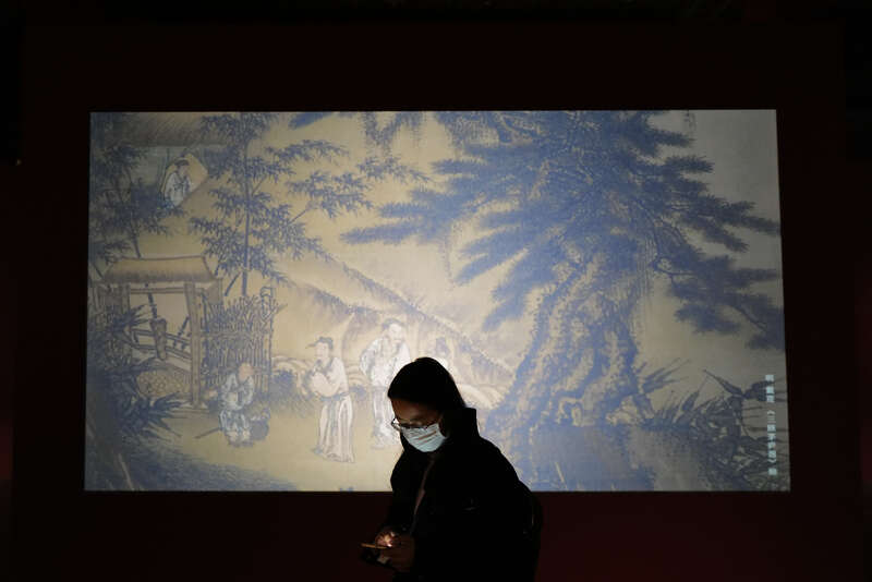 北京,故宫博物院文华殿书画馆,“庙堂仪范——故宫博物院藏历代人物画特展(第一期)”,一名参观者。中青报·中青网记者 赵迪 摄