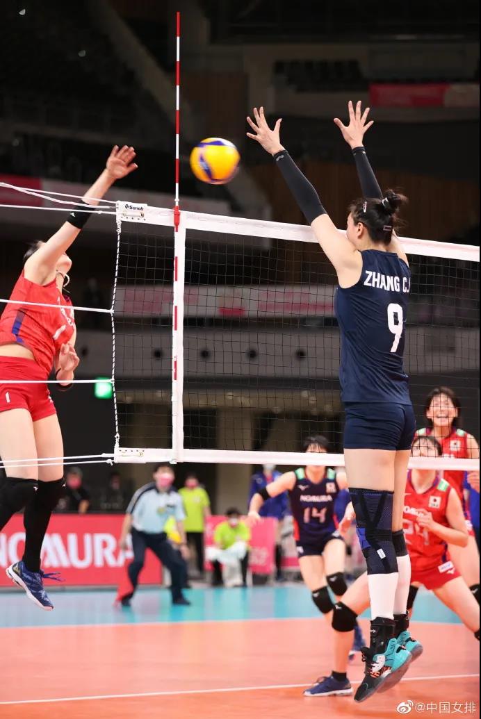 值得注意的是,第三局日本24-22先到局点,中国追平,日本又领先,朱婷几次打破对手局点,女排姑娘不断顽强追平,最终31-29取胜。