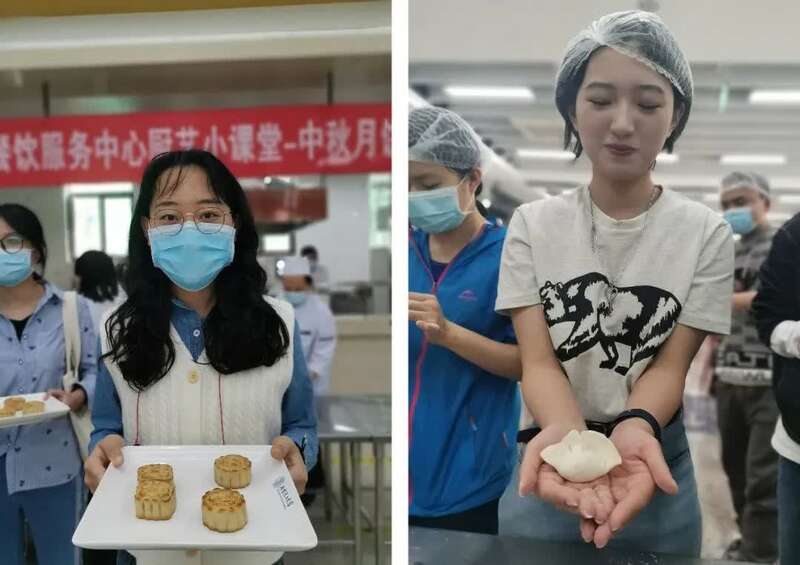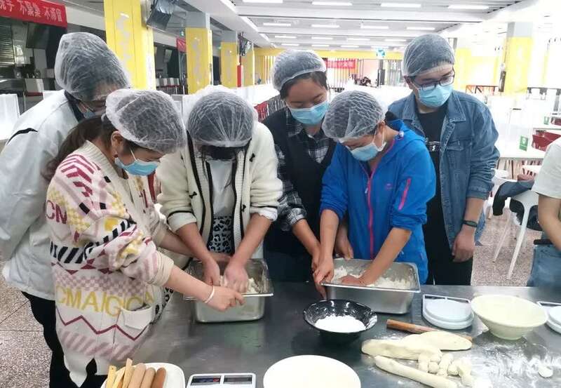这是北京化工大学“后勤学校”开设的厨艺课堂——烧麦及奶油炸糕制作课程的现场。
