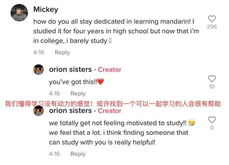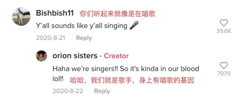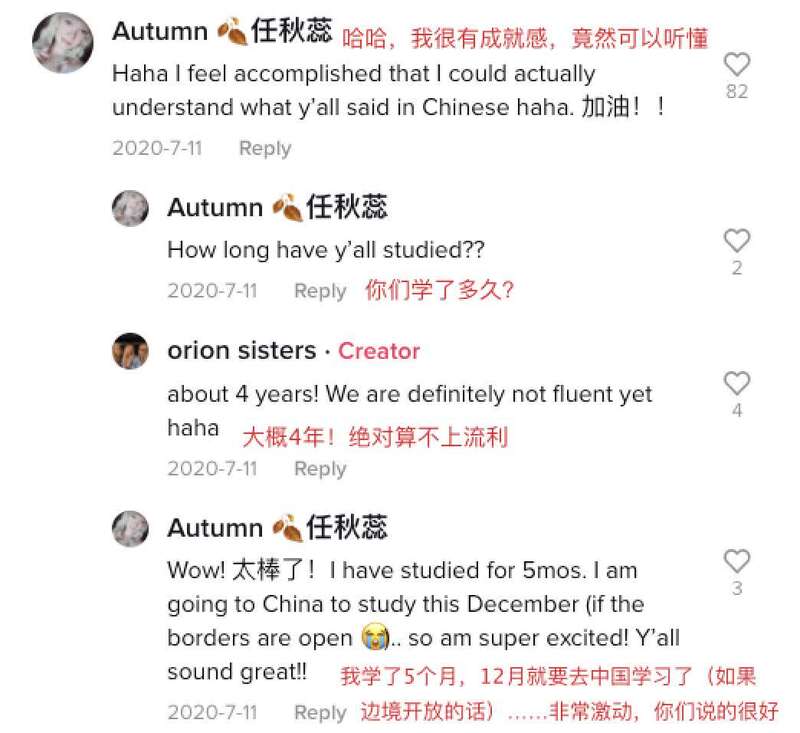 有网友留言说,听她们说中文就像在唱歌!