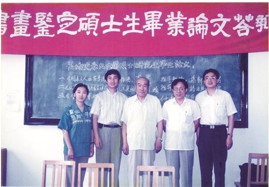 1996年刘老(中)作为中央美术学院第一届书画鉴定专业研究生导师,出席毕业论文答辩