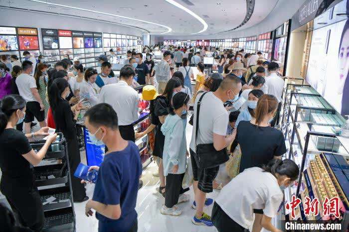 图为游客在三亚国际免税城选购化妆品。 骆云飞 摄